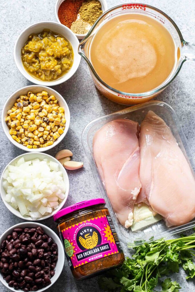Make it vegetarian – Swap the chicken for an extra serving of beans, corn, and green chiles, and use vegetable broth to keep it meat-free.