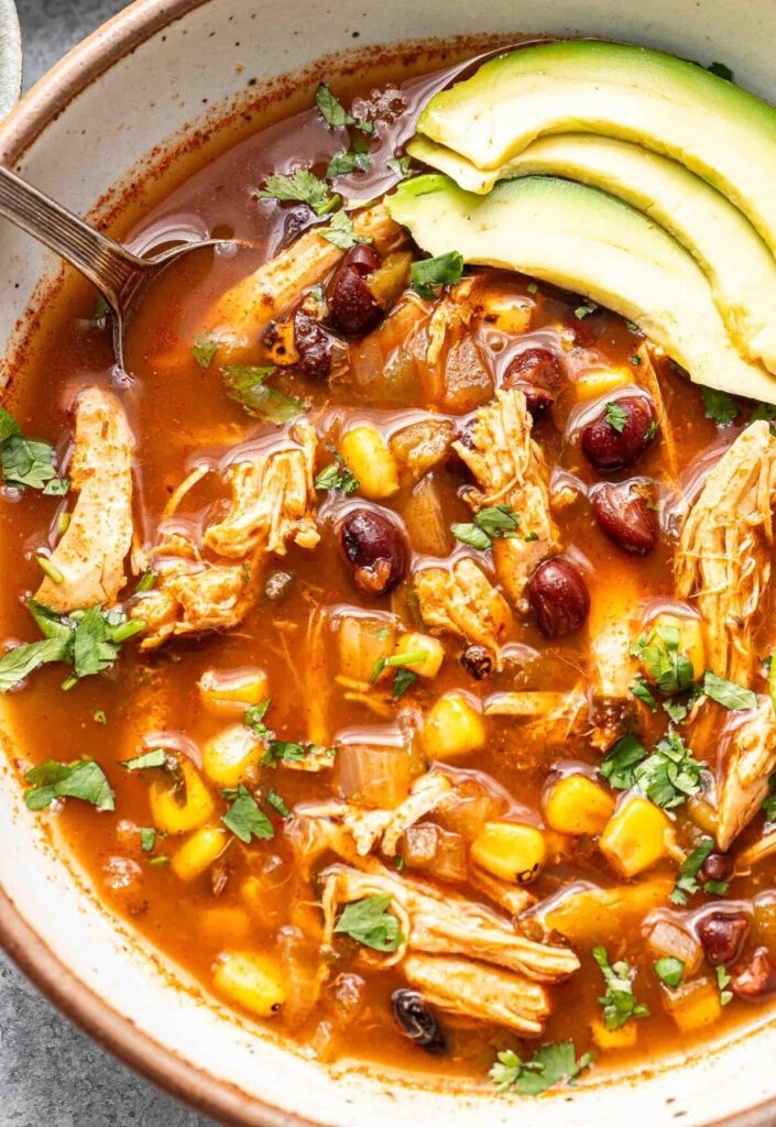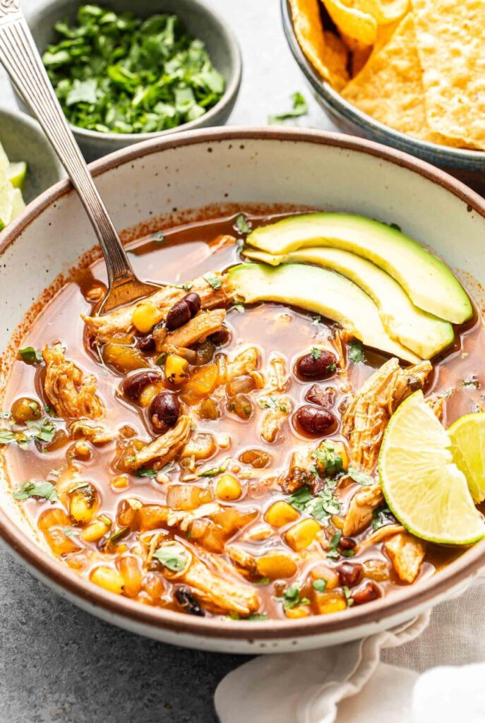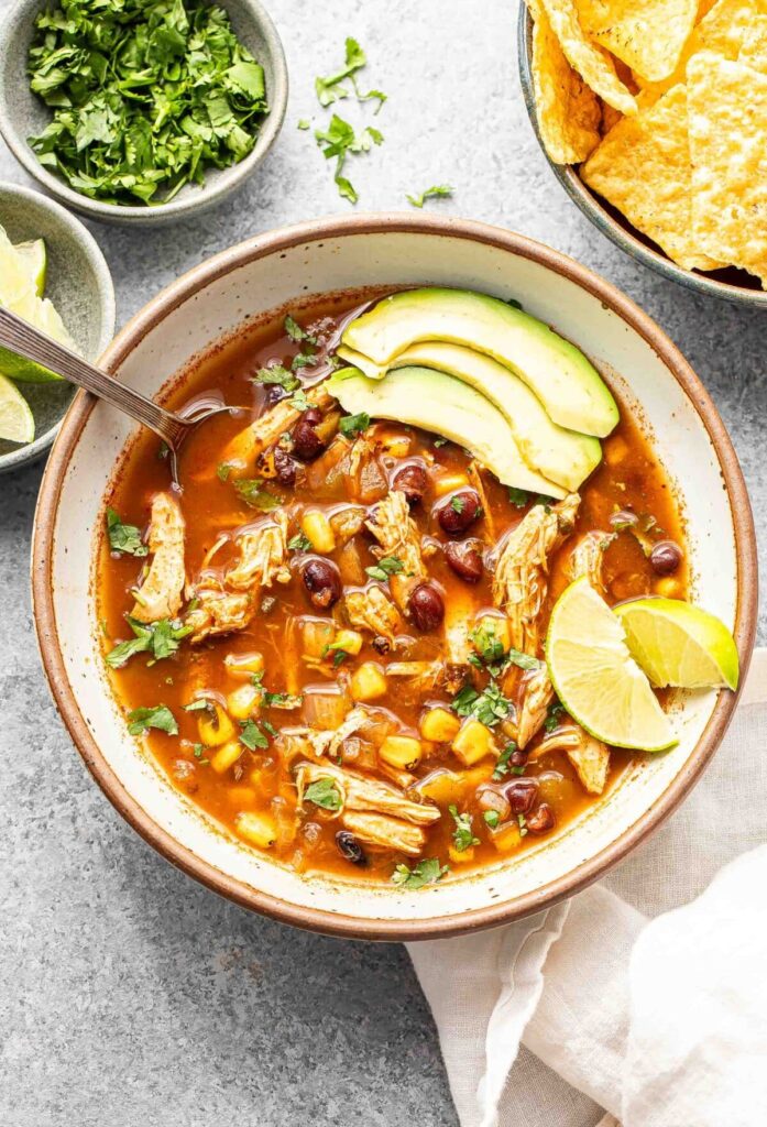 Healthy option – This soup is broth-based, so it’s naturally lower in fat since there’s no cream. It’s packed with protein from the chicken and beans. For an extra carb boost, pair it with tortillas or mix in some cooked rice into each bowl.